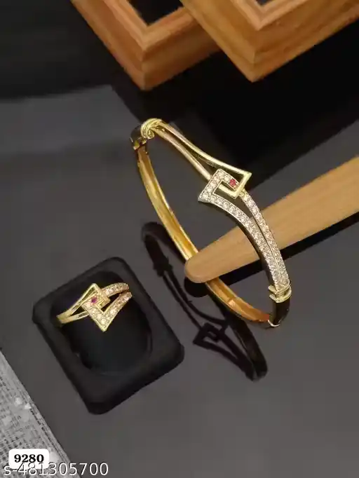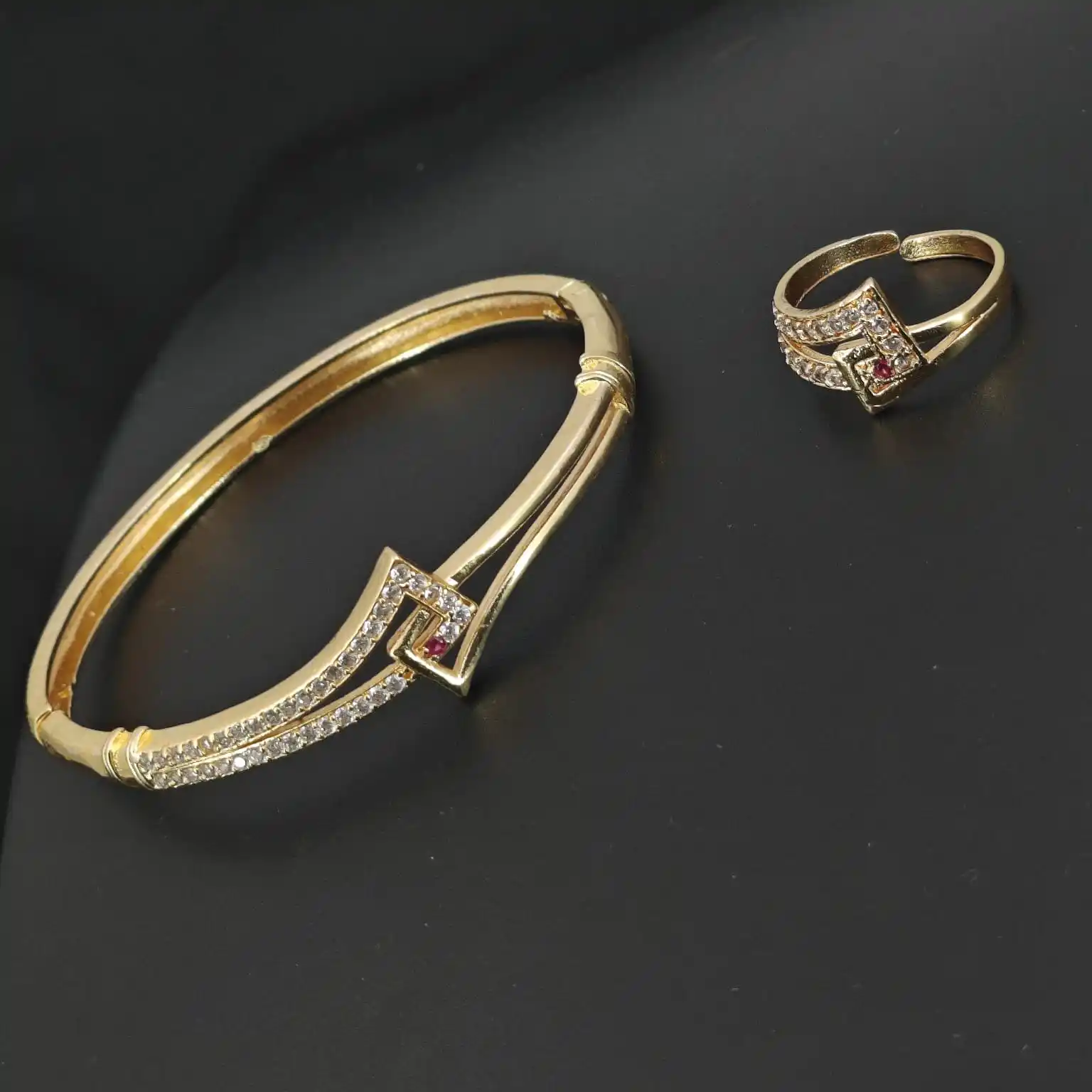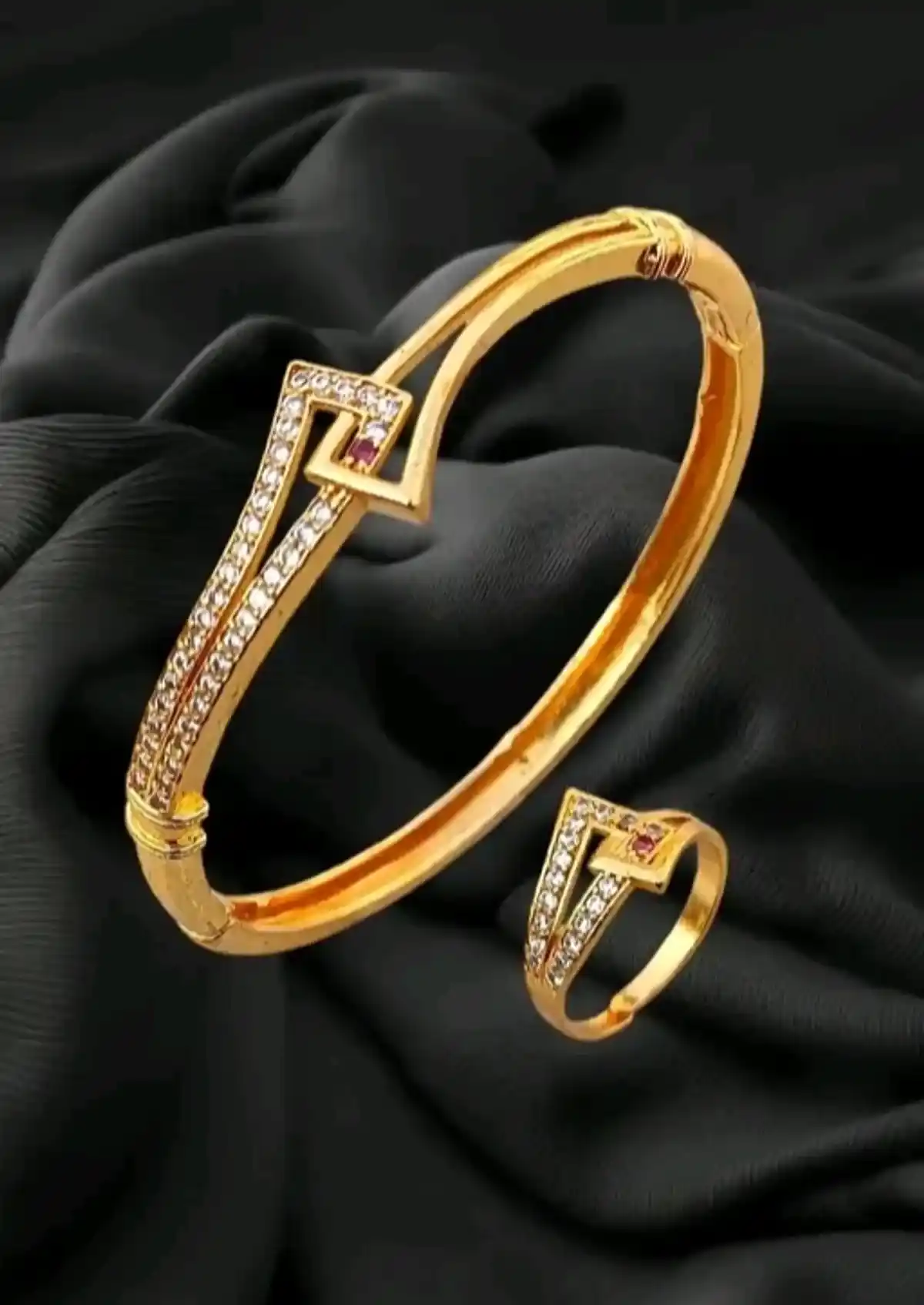 Stylish Gold Plated Bracelet & Adjustable Ring with Sparkling AD Diamonds